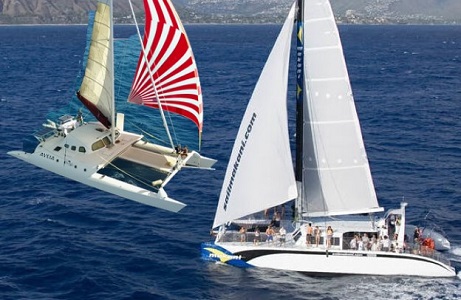 コオリナマリーナ内にあるコオリナオーシャンアドベンチャーズ “Ko’olina Ocean Adventures” が運航する53feet、GOLD COAST YACHTS社製カタマランです。